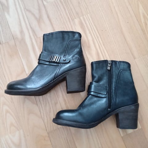 Vaalean ruskeat lyhyt vartiset nilkkurit, solkikoriste. Korko 7 cm, sisämitta 23 cm. Koko 37