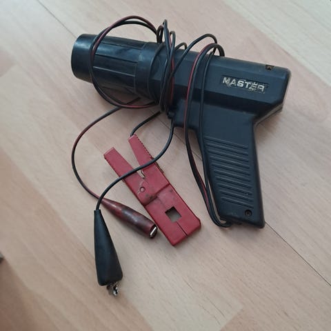 Optilux ajoituslamppu ja kierroslukumittari ajoneuvon sytytyksen säätöön. Settiin kuuluu käsivalaisinmallinen ajoituslamppu, erillinen kierroslukumittari sekä johdot ja hauenleukaliittimet akun ja sytytysjärjestelmän kytkentää varten. Kierroslukumittarissa asteikko 4- ja 6-sylinterisille moottoreille. Väri musta.
