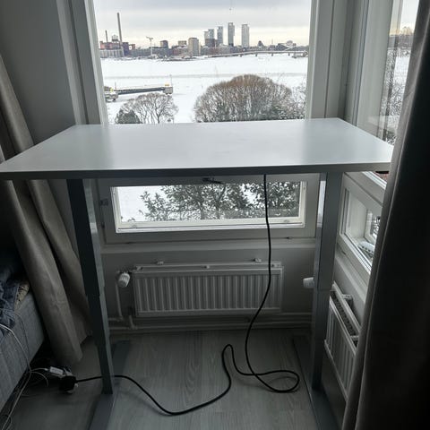 Myydään hyväkuntoinen Martela sähköisesti säädettävä työpöytä (160 × 80 cm). Pöytä on saatu yritykseltä toimistomuuton yhteydessä ja toimii moitteettomasti.