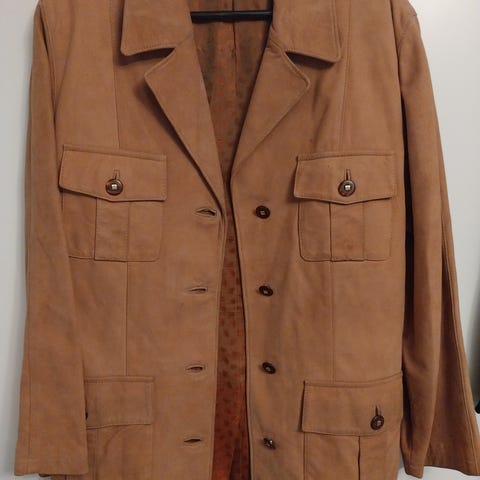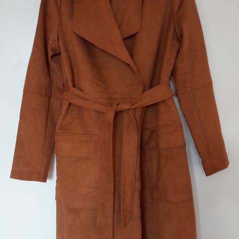 Jones New York naisten takki, koko S. Ruskea takki, jossa tekoturkisreunukset kauluksessa, etureunassa, hihansuissa ja helmassa. Pituus reiden ylä-/keskiosaan. Vuorillinen malli, joka soveltuu ulkokäyttöön viileämpiin säihin. Materiaalimerkintöjä ei ole näkyvissä kuvissa, mutta päällinen on samettimaisen sileää kangasta ja reunukset turkismateriaalia muistuttavaa tekoturkista. sisätaskuilla