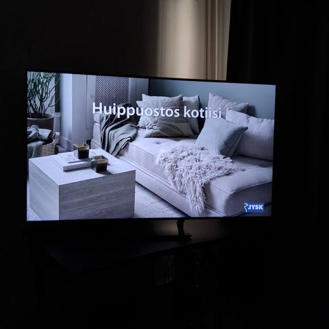 49 tumma televisio. Ääni: 2.0-kanavainen järjestelmä, 20 W teho. Liitännät: 4 x HDMI (sisältäen eARC/ARC portissa 4), 2 x USB, LAN, optinen äänilähtö, Wi-Fi ja Bluetooth. Televisioon on asennettu taustapuolelle (moniväri) LED-valonauha. Mitat ilman jalusta: 110,14 cm (leveys) x 63,71 cm (korkeus) x 5,92 cm (syvyys). Seinäkiinnitys: 200×200mm.