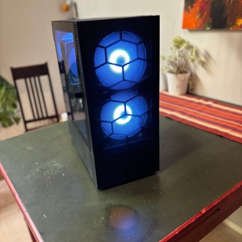 Super tehokas hintaan nähden ja näyttävä pelikone. Koottu myytäväksi. Saa kokeilla paikan päällä oston yhteydessä ja mukaan tulee tarvittaessa ohjeita koneen käyttöön.