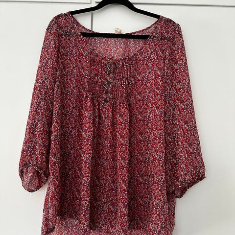Kaunis värinen naisten kietaisupusero. Kolmen neljäsosan hihat, joissa nappi. Kokoa 40, mutta mielestäni se on pienempi. Viskoosimateriaalia. Kunto on erittäin hyvä, koska sitä ei käytetty paljon. Nyt se on pieni minulle.
