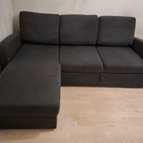 Kulmadivaani tummanharmaa kangas