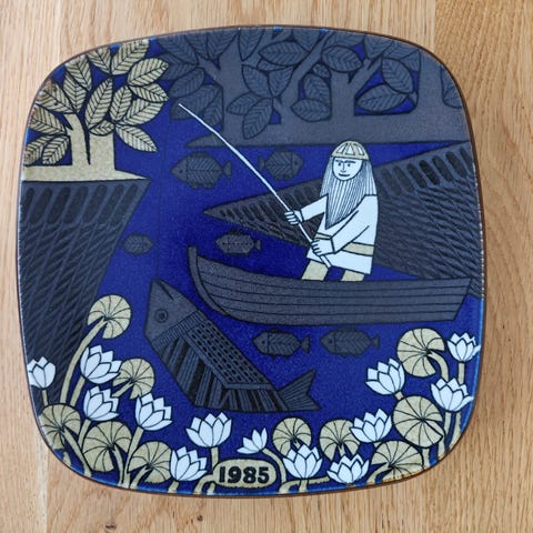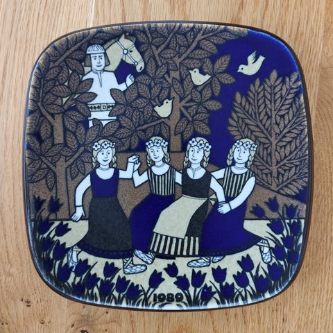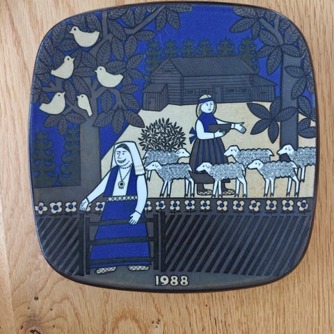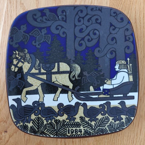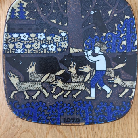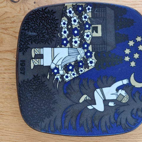 Arabian valmistama, Raija Uosikkisen suunnittelema Kalevala-vuosilautanen vuodelta 1980