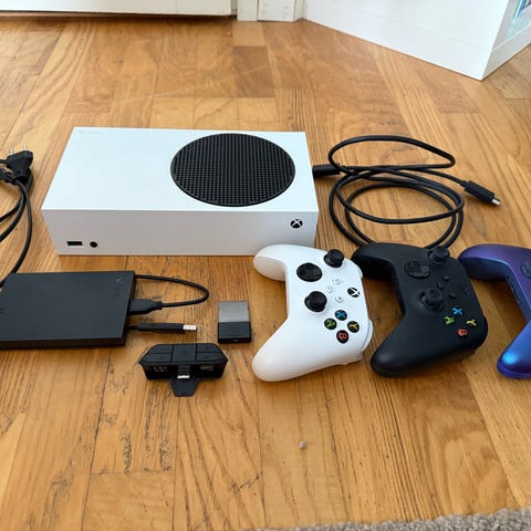 Microsoft Xbox Series S digitaalinen-pelikonsoli (364 GT tallennustilaa) Mukana punainen langaton pattereilla toimiva ohjain sekä tarvittavia johtoja (mm. virtajohto ja HDMI ). Sopii Xbox Series -peleille ja yhteensopiville laitteille. Uudenveroinen laite, ostettu vuonna 2022.