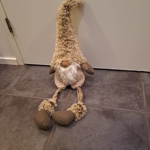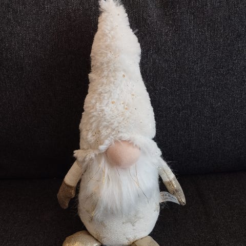 Yksi iso paristoilla toimiva tonttu (nenänpäähän syttyy valo) ja kolme pientä joulupukin maasta ostettua tonttua. Iso tonttu toimii, on ehjä.