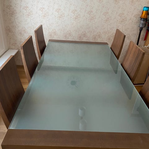 Axa pöytä lasilla.