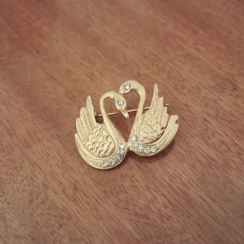 Myyntiin vanha riikinkukko-rintaneula (vintage). Kaksi kiveä puuttuu.