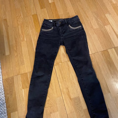 Mos Mosh Anemone Achilles farkut naisille. Koko XS, vyötärökoko W25. Sininen denim, materiaalina puuvilla. Viisitaskumalli, vyölenkit vyötäröllä ja vetoketju- sekä nappikiinnitys. Sopivat arkipukeutumiseen ja yhdisteltäväksi erilaisten yläosien kanssa.