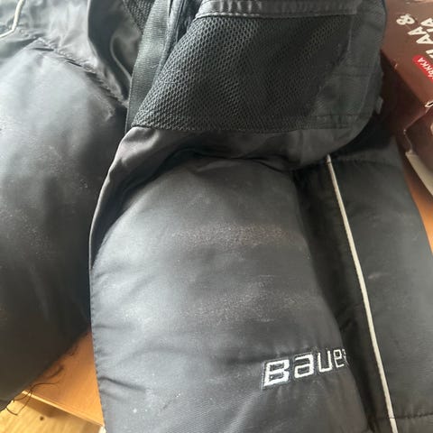 Bauer JR jääkiekkohousut juniorikoossa medium. Sopii noin 140-150 cm luistelijalle. Väri musta, sisävuorissa sinisiä ja vihreitä yksityiskohtia. Housuissa vyötäröllä nauha- ja solkikiristys. Ostettu uutena, mutta jääneet lähes käyttämättömäksi.