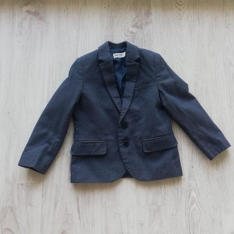 Myydään uutena ostettu, kahdesti käytössä ollut H&M:n laivastonsininen bleiseri, kokoa 122, materiaalina polyester.