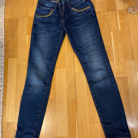 Mos Mosh naisten farkut, koko 36, vyötärökoko W26. Väri musta. Materiaalina puuvilla. Farkuissa on etu- ja takataskut sekä vyölenkit. Etutaskuissa koristeelliset yksityiskohdat. Soveltuvat arki- ja vapaa-ajan käyttöön.