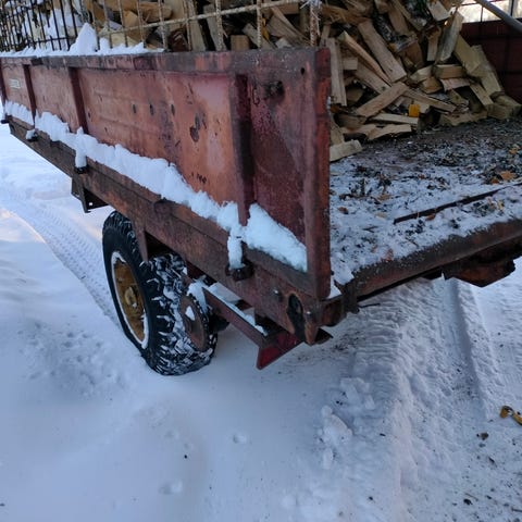 Siitä ylimääräiseksi jäänyt mönkijän kaksiakselinen peräkärry.