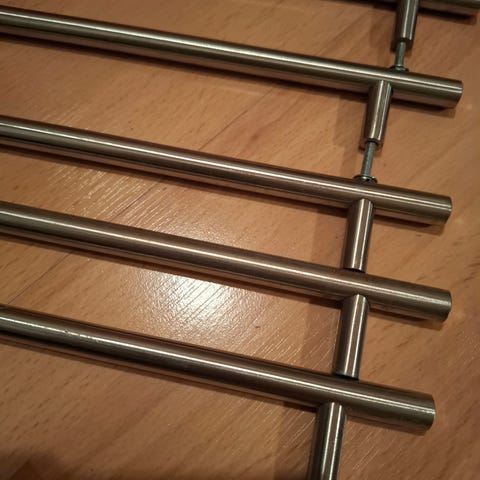Lyra harjattu messinki vetimet / ovenkahvat. 160 mm reikäväli. Vetimiä 19 kpl, ovat uusia paketeissa ja jäivät keittiörempassa käyttämättä.