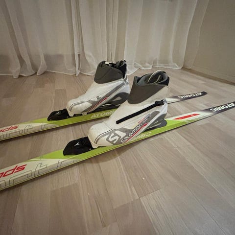 Atomic Sport Pro skinisukset 65 - 70 painoiselle. Säädettävät Rottefella siteet. Omassa käytössä olleet sukset, mutta käyneet liian "löysäksi" oman painon noustessa. Tästä johtuen karva kulunut hieman etuosasta.