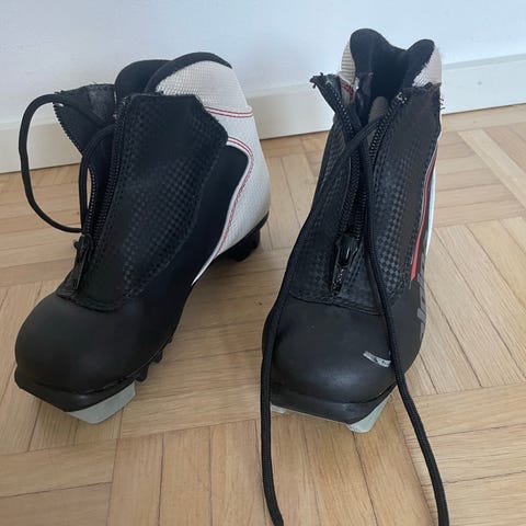 Fischer hiihtomonot harmaa musta. Monoissa on nilkkaa tukeva varsi sekä nauhakiinnitys, jonka päällä on suojaläppä. Värit ovat harmaa ja musta, ja kengissä on kumipohja, NNN-side.