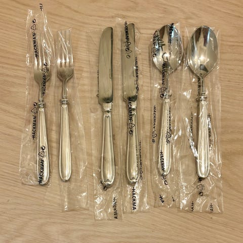 Uudet Hackman swing jälkiruoka aterimet. 6 haarukkaa, 6 veistä ja 6 lusikkaa.