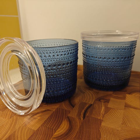 Ostan Iittala Kastehelmi lasipurkin 116 x 114 mm, väri aavikko. Tuotteen tulee olla täysin ehjä, uutta vastaavassa kunnossa.