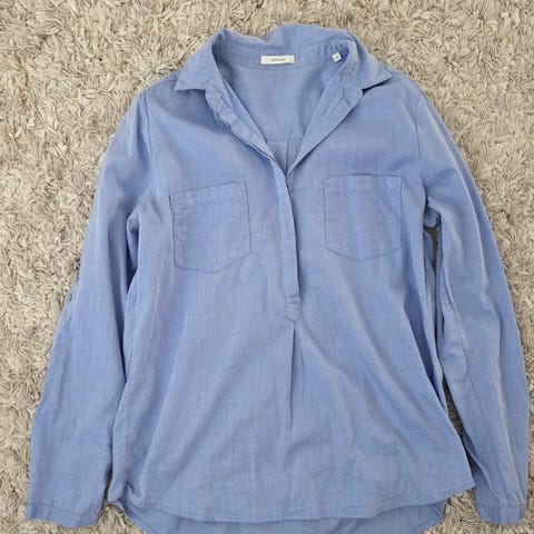 Sininen paitapusero, käyttämätön pehmeää puuvillaa. Menee kesällä vaikka takkina topin päällä.
