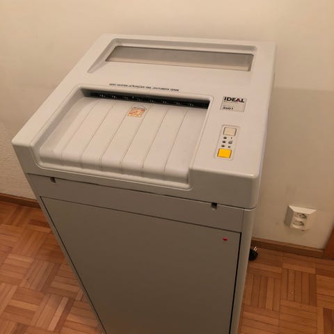 Ideal 2201 Cross/Cut paperisilppuri kotitoimistoon tai kotiin. Laite on täysin toimiva ja ehjä ja siinä on tilava säiliö paperi-silpulle.