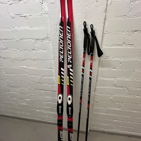 Peltonen maastohiihtosukset 167 cm ja sauvat.