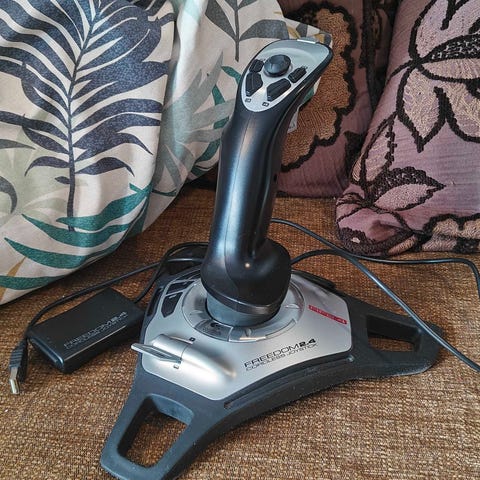 Logitech Extreme 3D Pro joystick USB-liitännällä. Väri musta/hopea. Ohjaimessa on useita ohjelmoitavia painikkeita, hat-kytkin peukalolle sekä liipaisin etusormelle. Jalustassa on lisäpainikkeita ja kaasu-/throttle-säädin. Soveltuu tietokoneen lentosimulaattoreihin ja muihin peleihin, jotka tukevat joystick-ohjausta USB-yhteydellä.