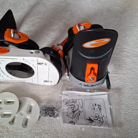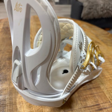 Myydään valkoiset Fireflyn siteet lumilautaan. Koko S