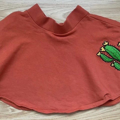 Hyvässä kunnossa. Koko 116/122. Melko huomaamaton tahra jota en saa oikein kuvaan.