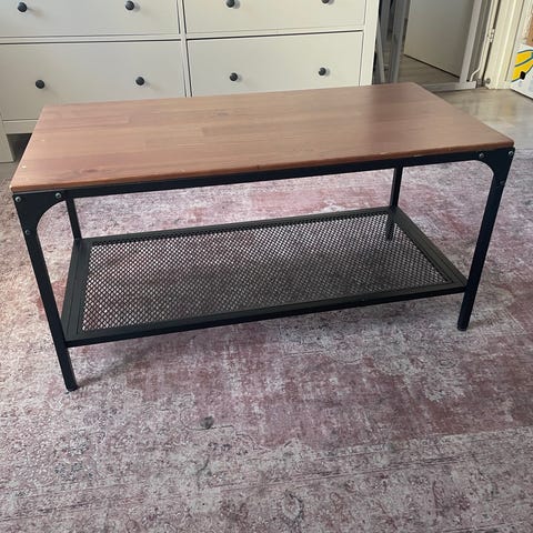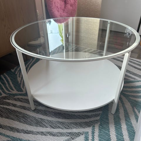 Kaksiosainen sohvapöytä. Pienemmässä pöydässä lasissa hieman käytöstä naarmuja.