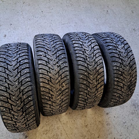 4-5mm kulutuspintaa, muutama nasta on lähtenyt mutta ihan ajettavat muuten vielä....