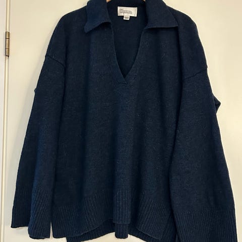Filippa K naisten neule. Koko L. Väri tummansininen. Materiaalikoostumus sisältää muun muassa kashmiria, villaa ja muita kuituja (tarkempi koostumus pesulapussa). Mallissa on V-pääntie, pitkät hihat ja joustavat resorit helmassa ja hihansuissa. Sopii arkeen ja kerrospukeutumiseen.