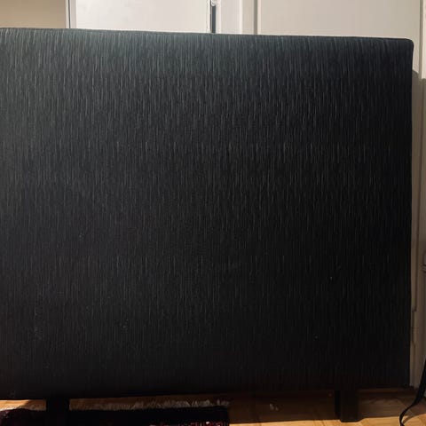 Musta napillinen sängynpääty 180x118cm (noin 8cm leveä), tekonahkaa ja takaa kangasta. Tavallista kulumaa. Vain nouto, vain käteinen. Talossa ei ole hissiä, tavara täytyy kantaa portaissa. Pääty ei ole painava. Ei tinkimistä, ei säätämistä.