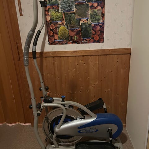 Epsilon kuntopyörä sisäliikuntaan. Harmaa runko, pystymallinen ajoasento. Varustettu satulalla, polkimilla ja ohjaustangolla, joissa säätömahdollisuudet käyttäjän pituuden ja ajoasennon mukaan. Soveltuu kotikäyttöön kuntoiluun ja peruskestävyysharjoitteluun.