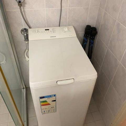 Päältä täytettävä pesukone 7kg. Ostettu vuonna 2020. Kannessa pieni kolhu, mutta ei vaikuta toimivuuteen. Koneen kanssa ei ole ollut mitään ongelmia ja se sopii loistavasti esim. opiskelijalle. Nouto Espoosta.