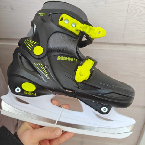 Yhdellä lapsella muutamana talvena käytössä olleet luistimet. Kokoa voi säätää 33-36 välillä.