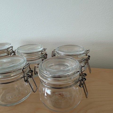 6kpl IKEA lasinen säilytyspurkki muovikansi