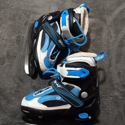 Lake Placid lasten säädettävät luistimet, väri valko‑pinkki. Kengässä nauhat, tarranauha ja solkikiristys, jotka tukevat jalkaa. Kiinnitys todella helppoa pikalukituksella ja tarranauhalla. Kokoa voi säätää rungossa olevasta säätönapista useamman koon verran. Terä on kiinteästi rungossa. Mukana teräsuojat kuvien mukaisesti. Soveltuu lasten yleiseen luisteluun. Hokkareitten ja kaunoluistimien välimuoto. Terän reunoissa pienet halkeamat. Ei vaikuta käyttöön.