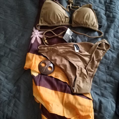 Moniväriset sitruuna kuosinen bikini setti. Koko: M ja 85B. Housujen tarkempi koko 35cm. Nouto HKI/Puistola/BC-alueella. Käteis maksu.