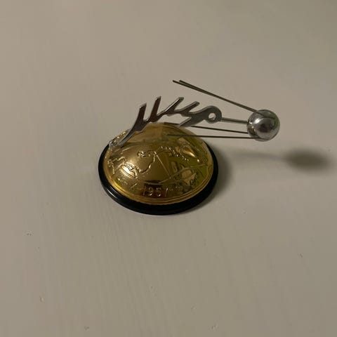 Neuvostoliittolainen avaruusaiheinen mitalisetti. Setissä on viisi viisikulmaista, kullansävyistä mitalia punaisella taustalla. Mitalien kuvioissa on avaruusaiheisia symboleja, kuten raketteja, satelliitteja ja ajoneuvoja. Sopii kokoelmaksi tai esille laitettavaksi esimerkiksi vitriiniin.