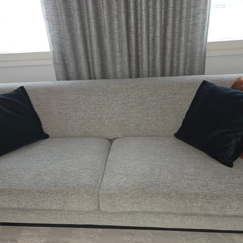 Hyväkuntoinen, ehjä Montesano ( Veke ) kangasverhoiltu 3-istuttava sohva. Sohvatyynyjen päälliset ovat irrotettavia vetoketjulla ja päälliset on pesty myyntiä varten. Sohvan väri vaaleanharmaa.