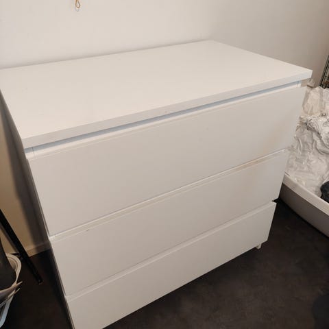 Myydään MALM-beige lipasto, 3 laatikkoa.