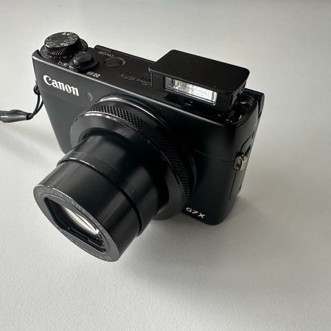 Canon G7 kompaktikamera, itsellä ei ole käyttöä, koska järjestelmäkamera hoitaa nykyään valokuvaustarpeet, mutta tämä kyseinen kamera on hyvässä kunnossa. Tinkimävaraa löytyy vähän, mutta tämä on tietääkseni aika haluttu kamera.
