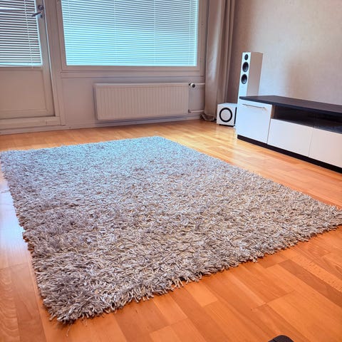Tummanruskea silmukkanukkainen matto, kumipohja (ei luista), koko 160x230cm, siisti, ei tahroja eikä eläimiä. Imatra, Tainionkoski, MMM.