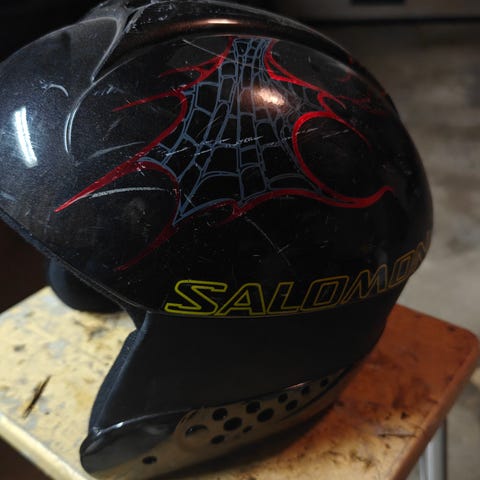 Lasten laskettelukypärä. Toisella puolella ja edessä tarra irti. Koko 51-52 cm.