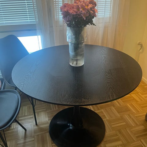 Kotiinkuljetus mahdollinen pientä lisämaksua vasten. Hyvässä kunnossa oleva ruokapöytä ja tuolit.