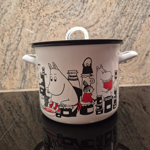 Kattila Muurla. Vappu Pimiä. Emaloitu teräskattila.Mitat korkeus 15 cm ja leveys 20 cm. Emali lohjennut pohjasta hieman ja sisältä hieman yhdestä kohtaa. Voidaan pestä tiskikonessa. Kattilan kansi on jostain eri kattilasta mutta sopii hyvin tähän kattilaan. Kattilan toimitus onnistuu Tampereen aluelle.