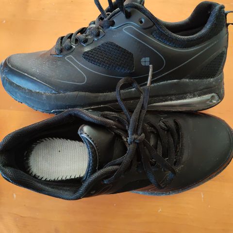 Kokki opintoja varten ostetut kengät, siistit mutta ollut käytössä. Sopii yleis työkengiksi, ei teräskärkeä. Koko 36-37 riippuen taka remmin kireydestä