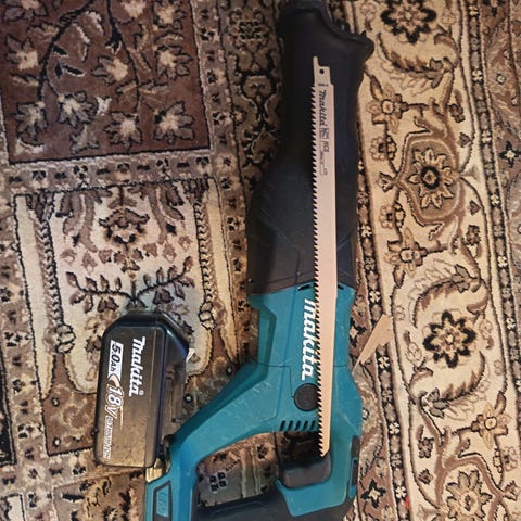 Myyntiin Makitan ammattiluokan puukkosaha. Kyseessä se parempi ammattimalli huoltovapaalla ja kestävällä hiiliharjattomalla moottorilla ja isommalla nopeudella. Kaksi eri nopeusaluetta (0-2300 ja 0-3000 rpm), lisäksi portaaton nopeussäätö kytkimestä.