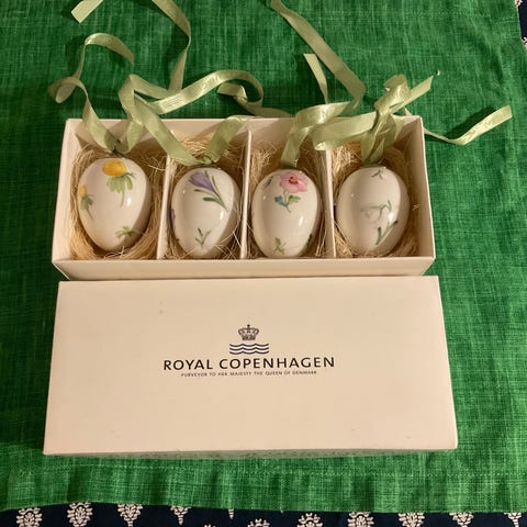 Royal Copenhagen posliiniset pääsiäismunat kukkakoristeilla 4 kpl